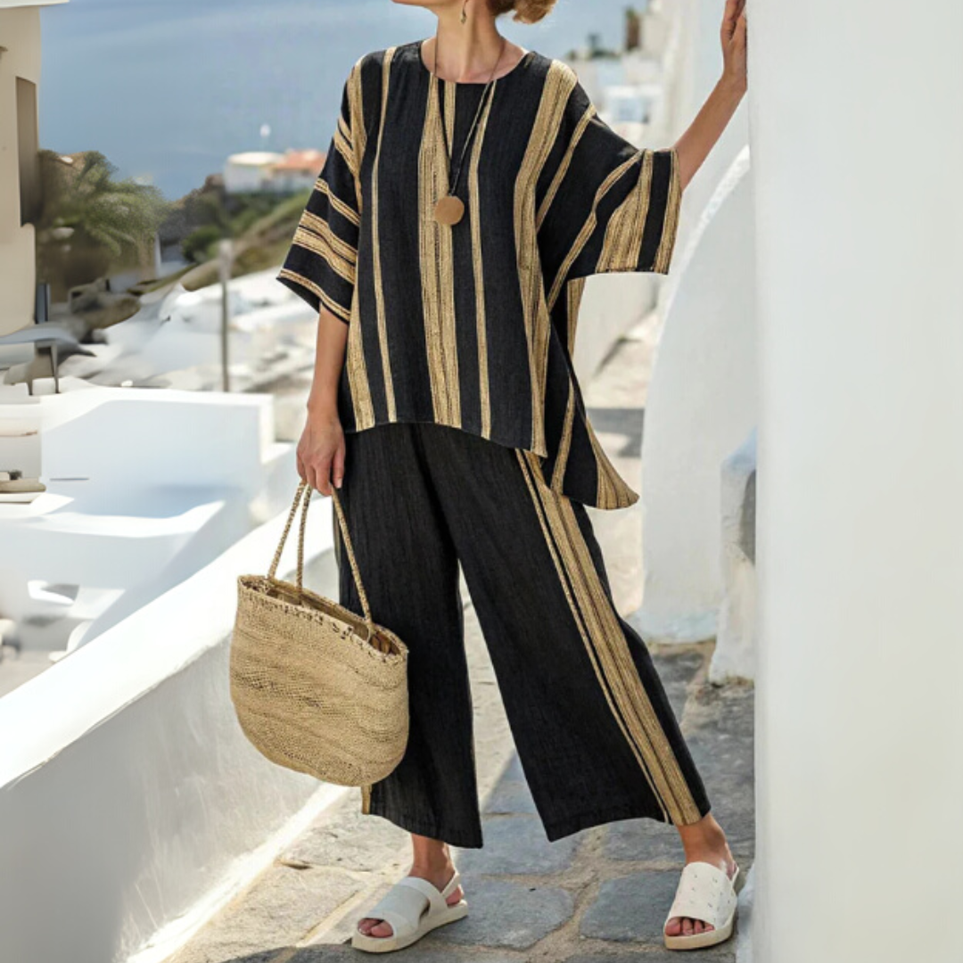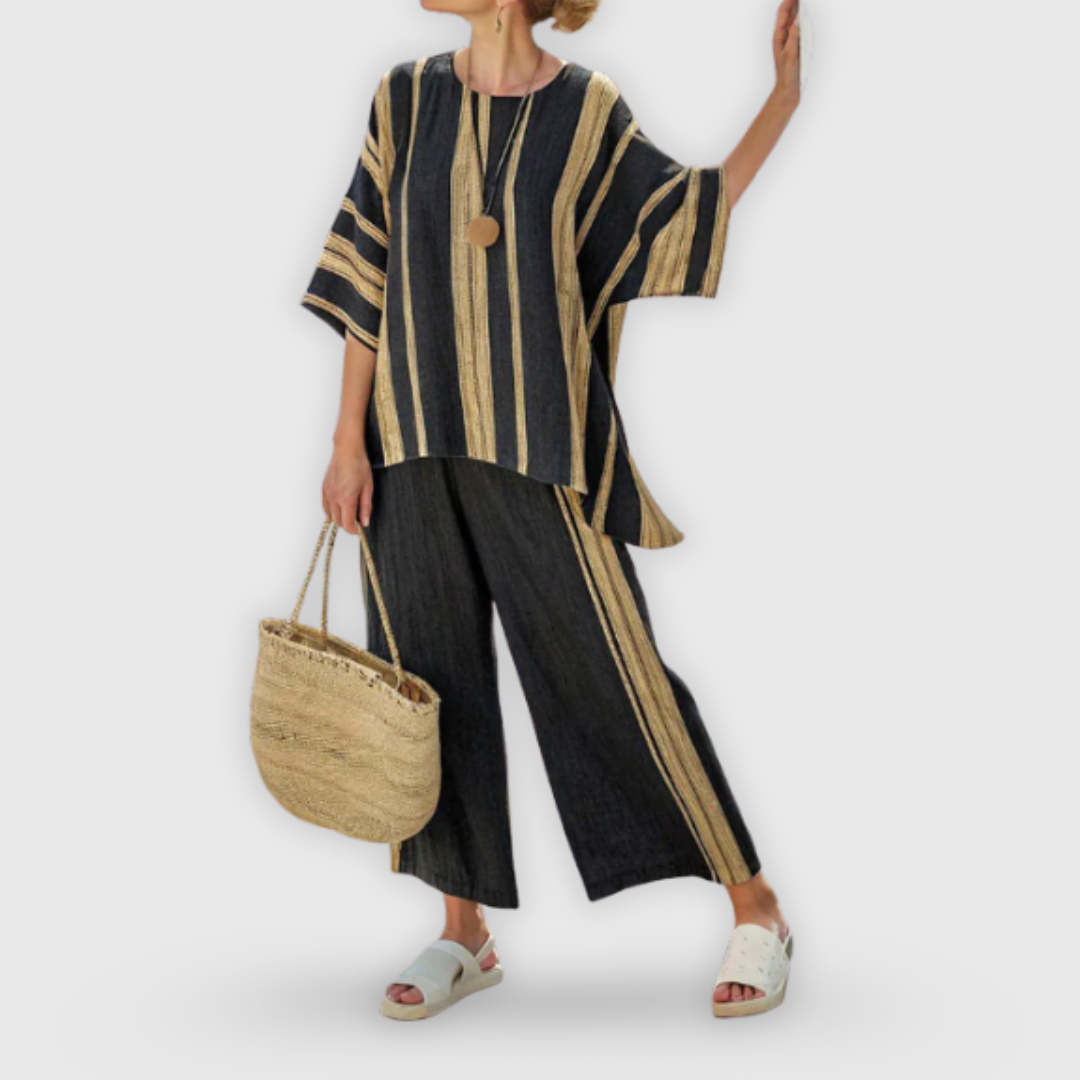 Zeitloser Stil – lockeres Zweiteiler-Design mit dezenten Streifen für ein elegantes Gesamtbild