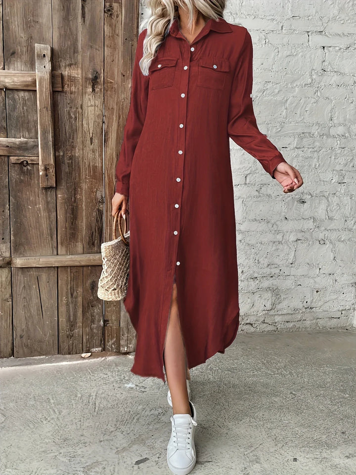 Elenoire vereint klassische Eleganz mit modernem Tragekomfort – ideal für sonnige Tage, entspannte Urlaube oder ein Mittagessen mit Freundinnen. Die weiche, fließende Qualität umschmeichelt deine Figur, ohne einzuengen, während die durchgehende Knopfleiste für einen lässigen Look sorgt.