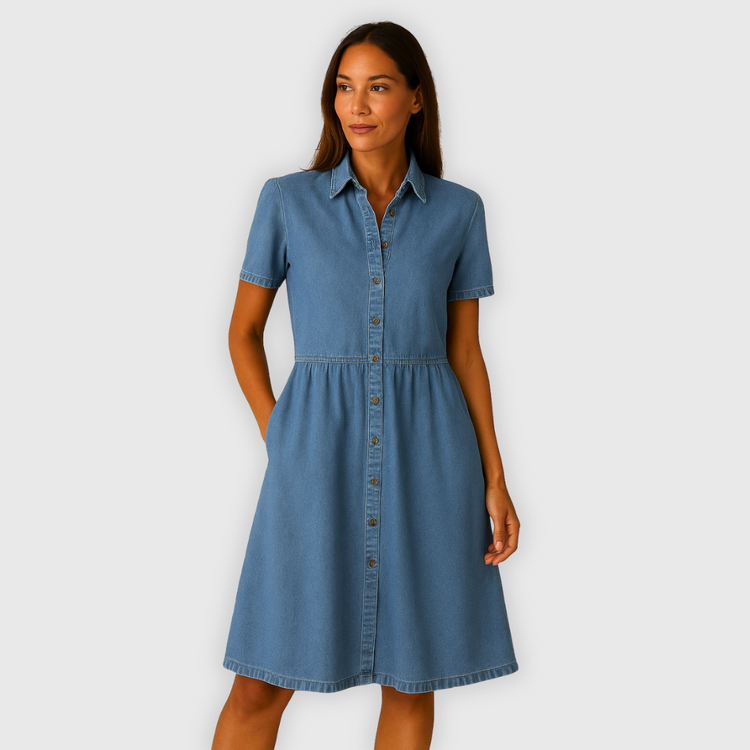 Das Kleid Edna vereint klassisches Design, bequemen Schnitt und weiches Denim zu einem Look, der immer passt. Die kurzen Ärmel und die durchgehende Knopfleiste verleihen ihm eine strukturierte Eleganz, die sich spielend leicht stylen lässt – lässig mit Sandalen am Tag oder leicht aufgewertet für den Abend.