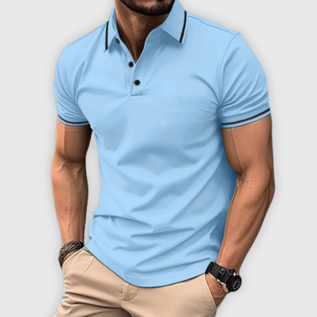 Schlanker Schnitt, frische Details, atmungsaktiver Komfort – dieses Polo mit Kontraststreifen ist die perfekte Mischung aus Alltag und Eleganz. Ideal für Männer, die lässigen Stil und modernen Anspruch verbinden möchten.
