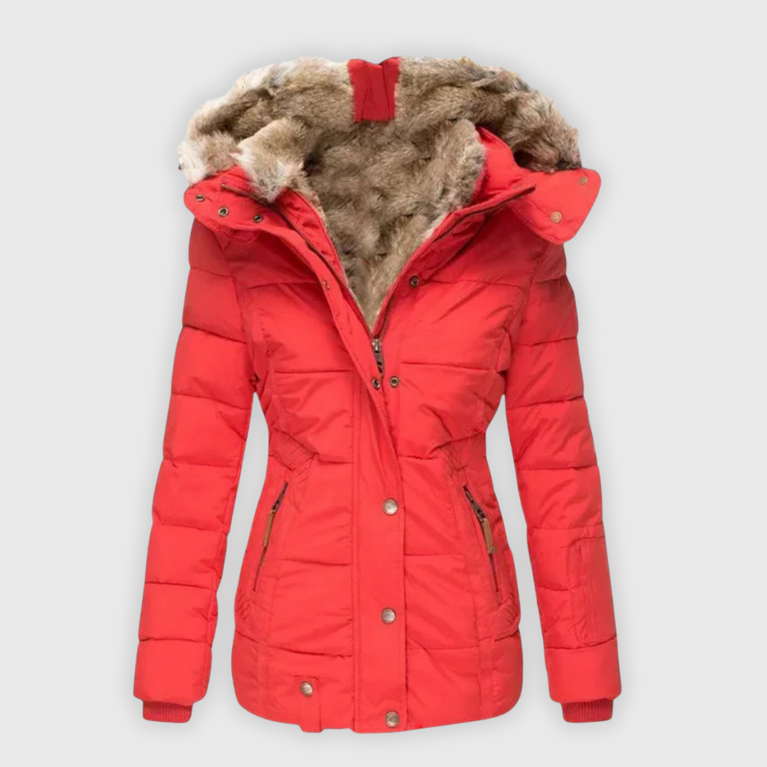 Verena | Warmer Mantel mit Kunstfellbesatz